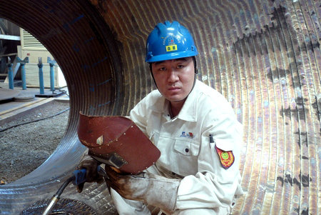 在電焊工崗位歷經十余年的磨礪,鍋爐公司重容分廠電焊組組長黨員白巖,從稚氣未脫的大男孩,一步步地成長為青年典范。面對新技術、新設備、新工藝,他總能成為第一個吃螃蟹的人。分廠引進大、小馬鞍自動焊設備,他潛心鉆研,很快掌握了設備操作要領,實現了下降管、給水管自動焊接代替手工焊接。他手把手教會了徒弟們,帶領馬鞍焊團隊創(chuàng)造了一次又一次的奇跡。明生達石化項目鎖斗人孔接管焊接,白巖與技術人員攻克焊接難關,實現了接管外徑接管與筒體直徑比值超過1/2、爬坡角度達到17°情況下的大馬鞍焊接,解決了上坡段及下坡段的成型問題,將接管焊接周期縮短了3天。他是一顆耀眼的新星,那美麗的弧光猶如白日焰火,璀璨綻放。
