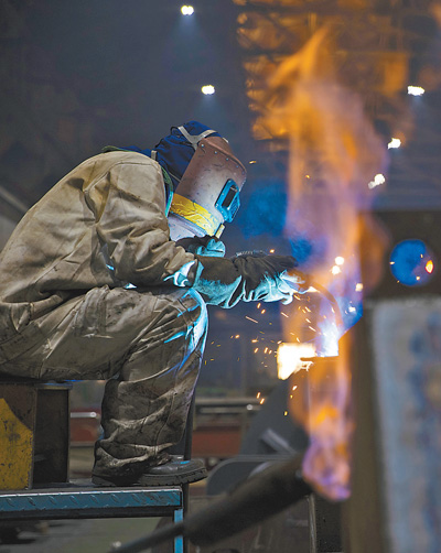 3月23日,黑龍江省哈爾濱市,工人在哈電集團(tuán)電機(jī)公司生產(chǎn)車間內(nèi)進(jìn)行焊接作業(yè)。在做好疫情防控的前提下,哈爾濱市規(guī)上企業(yè)堅(jiān)持防疫、生產(chǎn)“兩不誤”,保質(zhì)保量完成訂單,力爭(zhēng)最大限度減少疫情對(duì)經(jīng)濟(jì)社會(huì)發(fā)展的影響。